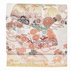【中古】丸帯 正絹 生成り地に鏡裏文様の丸帯【浅草店在庫】リサイクル