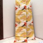 【中古】丸帯 交織 ゴールド地に飛鶴 巻絵文様の丸帯【浅草店在庫】リサイクル