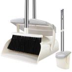【防臭】グレードアップバージョンの最大特徴は蓋付きチリトリ付くポイント ニオイをしっかりシャットアウト いつでもとごてもキレイな環境をキープ 【収納便利】ひとり立ち溝ほうきチリトリセット 狭いコーナースペースでも収納可能 ドア裏 ベランダ 洗濯機、冷蔵庫の側にも適切 穴付きほうきハンドル 壁フックに掛け 収納スペース節約 清潔感アップ 【改良版 掃除セット】持ちやすいソフトホルダー 腰を曲げずに・・・